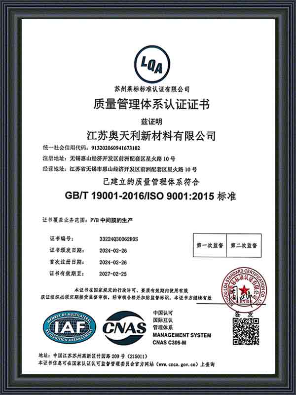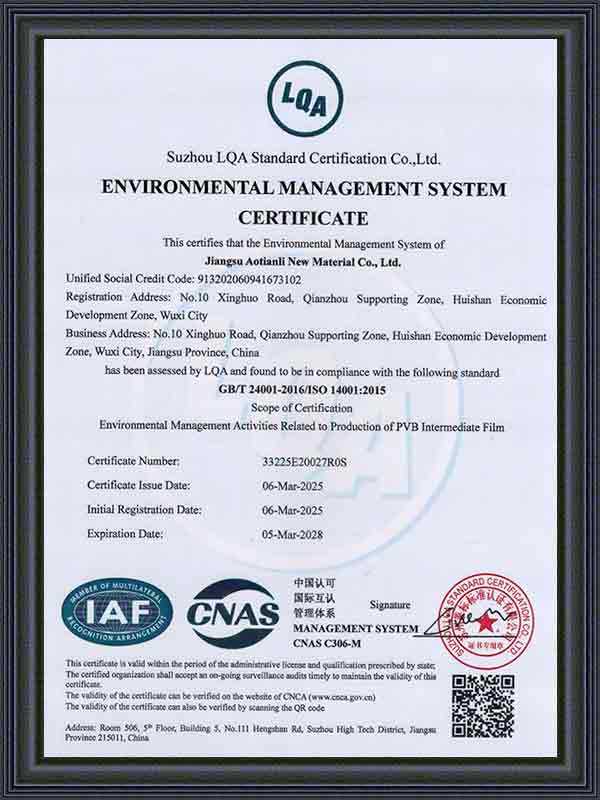 Jiangsu Aotianli Neues Material Co., Ltd. (ATL) wurde 2014 gegründet und hat seinen Hauptsitz in Wuxi in der Provinz Jiangsu. Das Unternehmen ist auf die Forschung, Entwicklung, Produktion und den Vertrieb von Hochleistungs-PVB-Zwischenschichtfolien spezialisiert. Mit einem fortschrittlichen Produktionsprozess, kontinuierlicher technologischer Innovation und einem vollständigen Lieferkettenlayout hat sich ATL eine wichtige Position auf den nationalen und internationalen Märkten für PVB-Zwischenschichtfolien erarbeitet.
